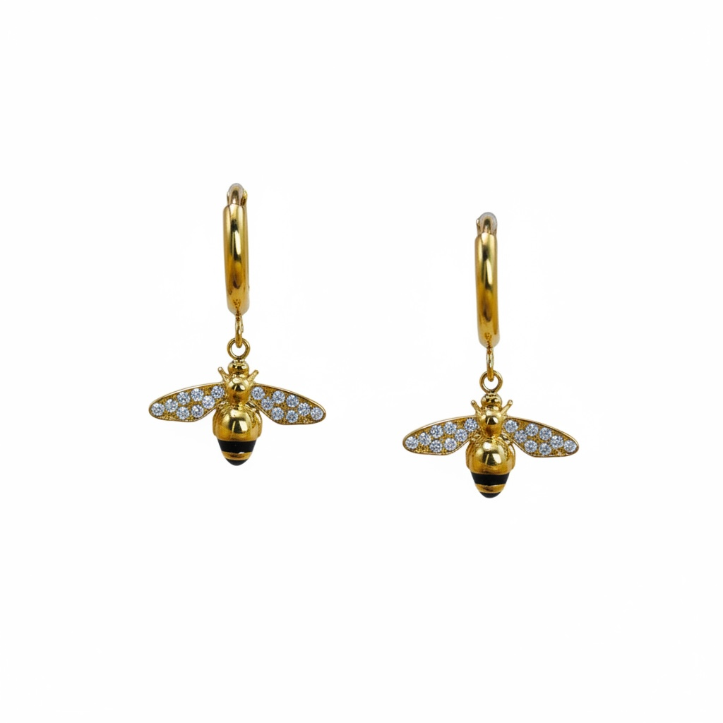 Los aros APIS están elegantemente decorados con pequeñas abejas, hechos de acero inoxidable. Añaden un toque sofisticado y exclusivo a cualquier look, mientras que su material duradero garantiza su calidad. Transforma tu estilo con estos accesorios inspirados en la naturaleza y su elegante simbolismo.